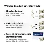 In combinatie met multidimensionale codering en een beveiligingskaart biedt dit een bijzonder sterke kopieerbeveiliging. Het systeem is internationaal gepatenteerd (tot 2030) en bovendien onbeperkt beschermd door een handelsmerk.