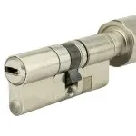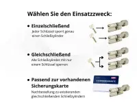 Met maximaal 16 veerbelaste pinnen, roestvrijstalen boorbeveiligingselementen en SKG***-certificering voldoet de draaiknopcilinder aan de hoogste eisen op het gebied van weerstand en manipulatiebeveiliging. Aan de buitenkant wordt de cilinder op conventionele wijze bediend met een omkeerbare sleutel, terwijl aan de binnenkant een vaste draaiknop zorgt voor snel en sleutelloos openen. Bij gelijksluitende cilinders worden alle sleutels automatisch geleverd met het hoogste beveiligingsniveau.